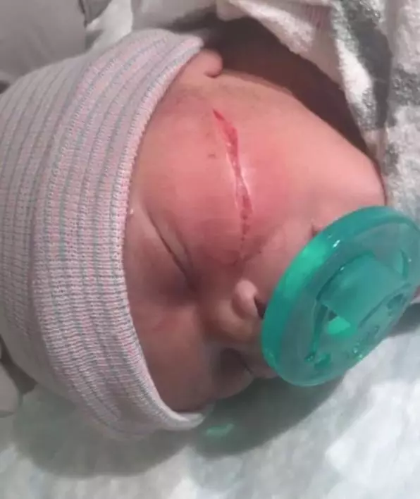 Die Ärzte sagten, dass das Gesicht des Babys sich zu nahe an der Plazentawand befände und als Kyanni geboren wurde, hatte es einen massiven Schnitt im Gesicht. Ein plastischer Chirurg musste die Wunde des Babys nähen.