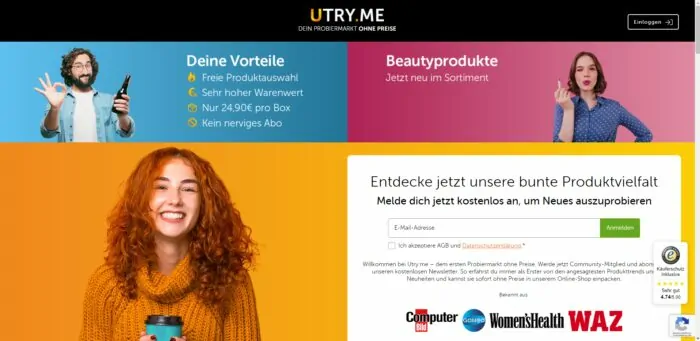 Aufmerksam wurde ich auf Utryme auf Facebook. Mich sprach der Post an und ich entschloss mich, das Angebot auszuprobieren. Der Slogan: „Utry.me – dein Probiermarkt ohne Preise!“ sprach mich an.