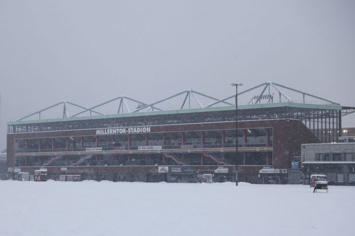 «Aufgrund der gegenwärtigen Witterungsverhältnisse mit starkem Schneefall und Schneeverwehungen ist die Sicherheit der Versammlungsstätte und die sichere Durchführung der Veranstaltung unter Einhaltung aller Betriebsvorschriften nicht gewährleistet, so dass das Millerntor-Stadion in Absprache mit der Millerntor Stadion Betriebsgesellschaft durch Beschluss des Präsidiums des FC St. Pauli e.V. für das anstehende Spiel gesperrt wurde», hieß es vom FC St. Pauli.
