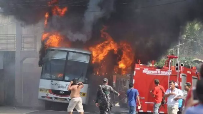 Sechs Passagiere wurden bei dem Brand des Busses in der Stadt M’lang in der Provinz Cotabato (Philippinen), etwa 950 Kilometer südlich von Manila, am Donnerstag ebenfalls verwundet, so ein Polizeibericht.