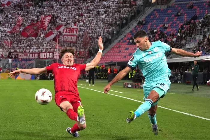 Johan Manzambi, der Mittelfeldspieler, hatte in der ersten Halbzeit die einzige gefährliche Gelegenheit. Sein Schuss nach einer Ecke wurde von Santiago Castro von Bologna kurz vor der Linie abgeblockt (23.). Kurz darauf war der SC im Rückstand.
