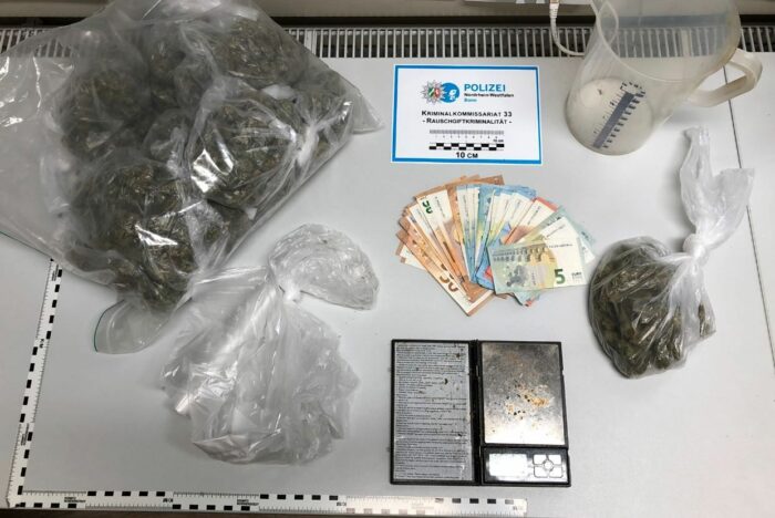 Rauschgiftspürhund „Pepples“ hatte dabei den richtigen Riecher und erschnüffelte rund 850 Gramm Marihuana. Neben dem Rauschgift stellten die Fahnder auch eine Feinwaage, Verpackungsmaterial sowie einen größeren Bargeldbetrag sicher.