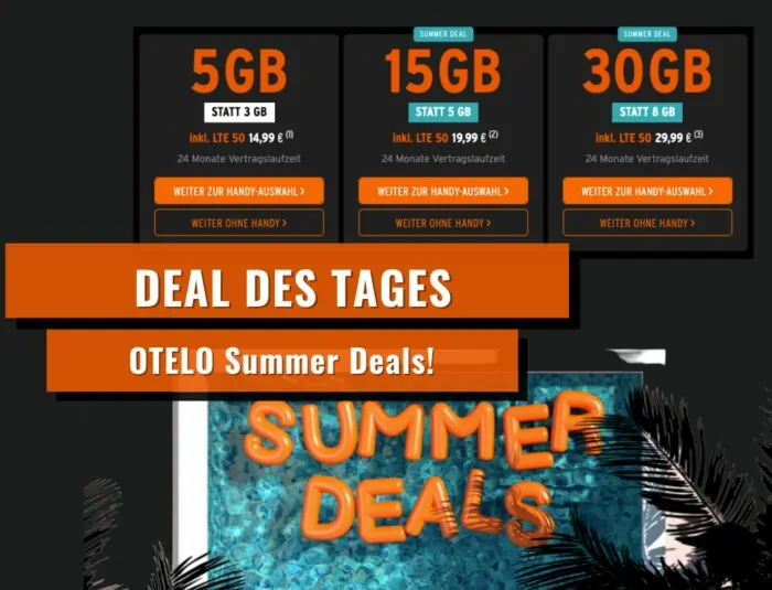 Im Summer Deal von OTELO gibt es jetzt einen ordentlichen Zuschlag für die Allnet Tarife. Hier bekommt man nämlich jetzt mindestens das dreifache Datenvolumen. So gibt es nämlich statt 5GB schon 15GB für 19,99€