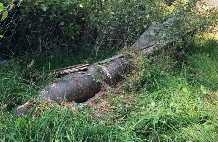 Vor Ort fand sich eine fünf Meter lange und nur noch aus der Außenhülle bestehende ehemalige Rakete mit einem Durchmesser von knapp 50 cm.