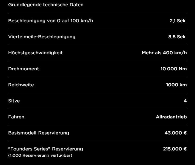 Der neue Tesla ist anders als der erste Tesla-Roadster von Beginn an als reines Elektro-Auto konzipiert. Beim ersten Tesla-Roadster handelte es sich dagegen um einen nachträglich zum E-Auto umgebauten Lotus. Dieser war dadurch aber sehr hecklastig, weil anders als bei den übrigen Teslas die Batterien noch nicht im Boden verbaut waren. Seinen eigenen roten Tesla-Roadster hat Musk übrigens ins Weltall schießen lassen.