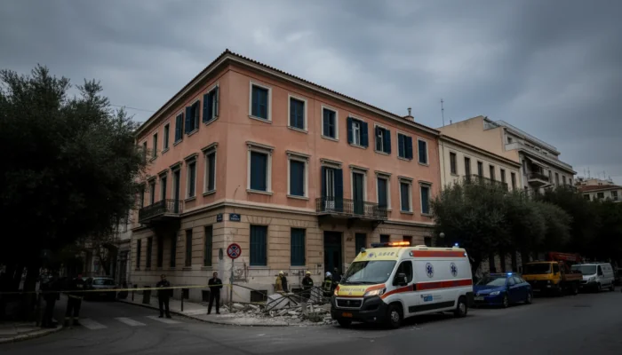 In Korinth wird eine 43-jährige deutsche Urlauberin von herabstürzenden Betonteilen eines maroden Balkons getroffen und stirbt am Unfallort. Die Behörden nehmen einen Bauunternehmer fest und ermitteln wegen möglicher Sicherheitsmängel.