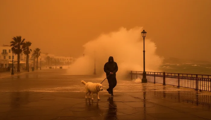 Eine heftige Unwetterfront über dem zentralen Mittelmeer hat massive Beeinträchtigungen in der Ägäis und auf Kreta verursacht. Die Behörden haben die Bevölkerung in zahlreichen Regionen Griechenlands per SMS aufgefordert, möglichst in ihren Wohnungen zu bleiben. Auf einigen Ägäis-Inseln wurden Windgeschwindigkeiten von bis zu 120 Kilometern pro Stunde gemessen, was teilweise zu Überflutungen führte.