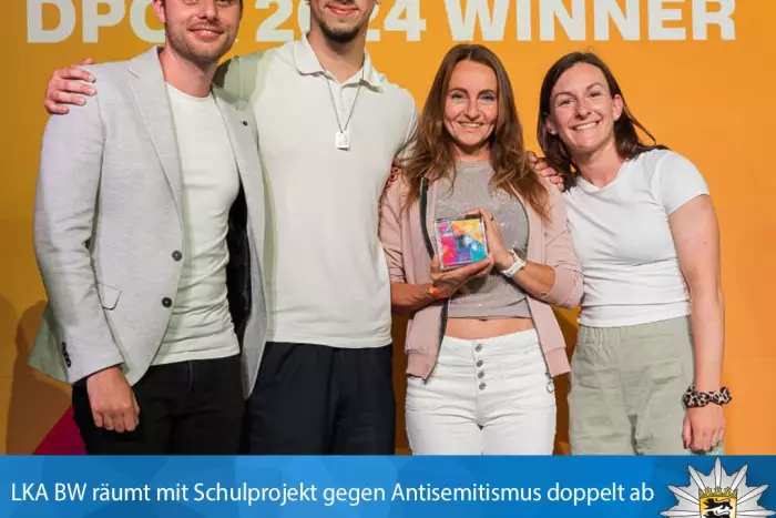 Umso größer war die Freude, als feststand, dass das LKA BW auf der Shortlist stand. Am 7. Juni galt es nun, die Fachjury im Pitch vom Projekt zu überzeugen. Mit dem Schulwettbewerb waren Schülerinnen und Schüler ab der 8. Klasse in Baden-Württemberg aufgerufen, den Blick zum aktuellen jüdischen Leben in Deutschland zu richten und dieses in kreativen Projekten darzustellen. Ziel war es, durch die Auseinandersetzung mit dem Thema mit Stereotypen aufzuräumen und so Vorurteile gegenüber jüdischem Leben abzubauen. Dieses Konzept ging voll auf. 500 Schülerinnen und Schüler nahmen mit fast 70 Projektarbeiten teil und beeindruckten mit Vielfalt, Kreativität und Tiefgang. Das überzeugte dann auch die Fachjury des DPOK und so hieß es am Abend des 7. Juni zweimal: And the winner is: Landeskriminalamt Baden-Württemberg.