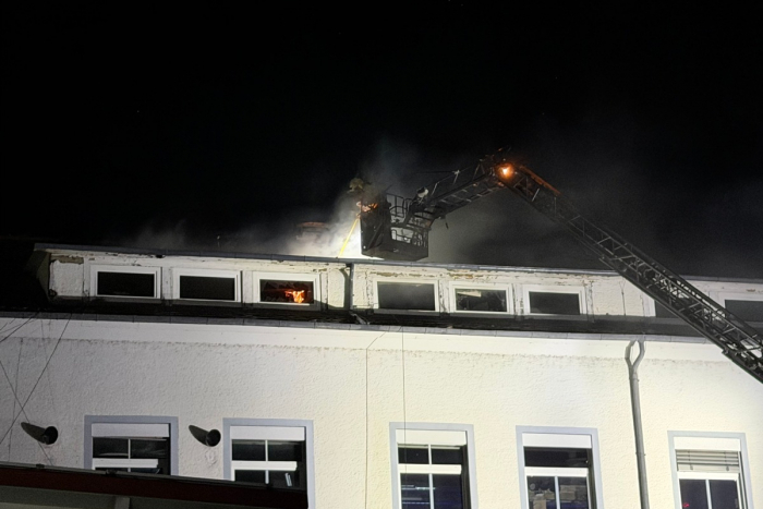 Am 02.04.2026 um 2:30 Uhr wurde die Feuerwehr Stockach Abteilung Kernstadt mit dem Alarm „B3 Brand im Gebäude“ in die Heinrich-Fahr-Straße in Stockach gerufen. Als die Einsatzkräfte ankamen, sah man Flammen im obersten Stockwerk eines 3-stöckigen Geschäftsgebäudes.