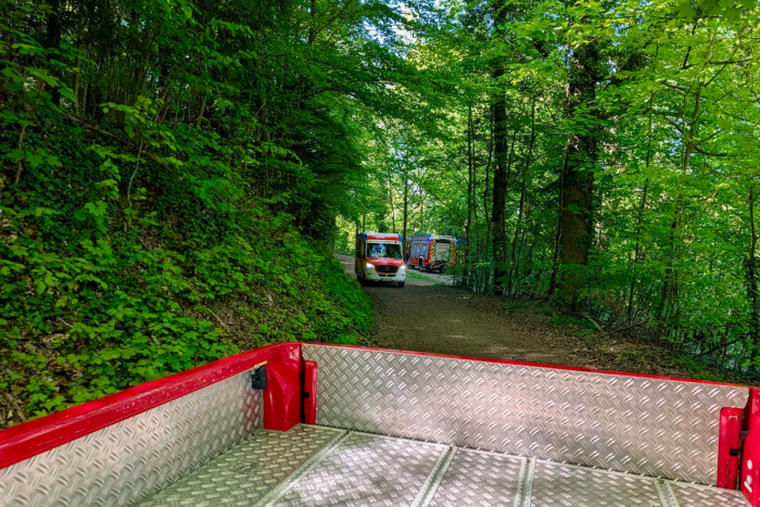 Die Feuerwehr Weinheim half mit technischem Equipment und geländegängigen Fahrzeugen bei der Rettung der Person. Nach der Erstversorgung wurde die Person aus dem Exotenwald gerettet und mit einem Rettungswagen ins Krankenhaus gebracht.