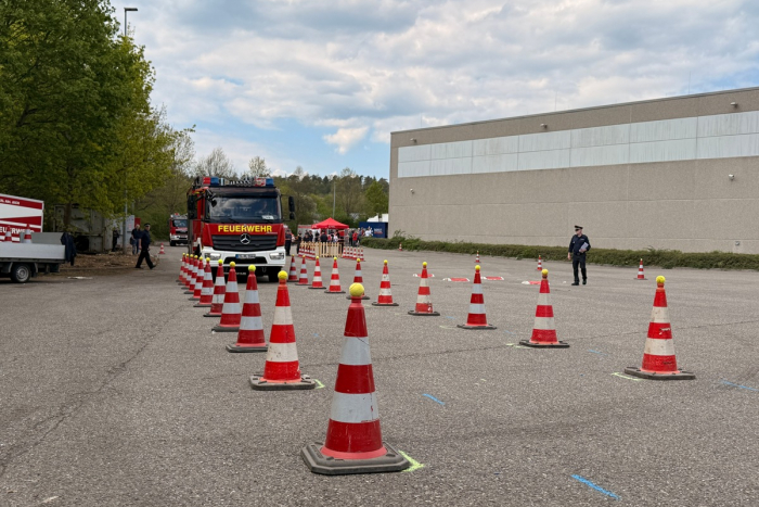 Rund 60 Maschinisten stellten ihr Können unter Beweis – anspruchsvoller Parcours und theoretische Prüfung erfolgreich absolviert. Am Samstag, 18. April 2026, fand in Aichtal die Geschicklichkeitsprüfung für Maschinisten der Freiwilligen Feuerwehren im Landkreis Esslingen statt. Veranstaltet wurde die Prüfung vom Landratsamt Esslingen, die Ausrichtung übernahm die Freiwillige Feuerwehr Aichtal. Insgesamt nahmen rund 60 Feuerwehrangehörige aus 18 Wehren des Landkreises teil. Ziel der Veranstaltung war es, die Fähigkeiten der Maschinisten im sicheren und präzisen Umgang mit Löschfahrzeugen unter Beweis zu stellen. Die Prüfung setzte sich aus einem theoretischen und einem praktischen Teil zusammen. Zu Beginn absolvierten die Teilnehmer eine schriftliche Prüfung mit einer Dauer von maximal 30 Minuten. Inhaltlich orientierten sich die Fragen an den Themen der Führerscheinklasse C sowie am Lehrstoff „Maschinist für Löschfahrzeuge“. Im praktischen Teil galt es, einen anspruchsvollen Parcours mit insgesamt 13 Aufgaben mit einem Löschfahrzeug möglichst fehlerfrei und innerhalb einer vorgegebenen Zeit von maximal sechs Minuten zu durchfahren. Bewertet wurden sowohl die Fahrtechnik als auch die Einhaltung der Abläufe. Als bestanden galt die Prüfung, wenn nicht mehr als 30 Fehlerpunkte erreicht und die Höchstzeit eingehalten wurde. Kreisbrandmeister Guido Kenner war ebenfalls vor Ort und verschaffte sich einen Eindruck von den Leistungen der Teilnehmer. „Es freut uns sehr, dass nach einigen Jahren wieder ein Geschicklichkeitsfahren in unserem Landkreis stattfinden konnte“, betont Carsten Zander, Pressesprecher der Feuerwehren im Landkreis Esslingen. „Wir freuen uns als Feuerwehr Aichtal, das Geschicklichkeitsfahren für Maschinisten im Landkreis Esslingen ausrichten zu dürfen. Besonders möchten wir der Firma ALDI danken, auf deren Firmengelände wir dies veranstalten dürfen“, ergänzte Corvin Steindl, Kommandant der Feuerwehr Aichtal. Ein Großteil der Teilnehmer konnte die Geschicklichkeitsprüfung erfolgreich absolvieren und damit seine Qualifikation als Maschinist unter Beweis stellen. Die Geschicklichkeitsprüfung stellt einen wichtigen Baustein in der Ausbildung der Maschinisten dar und trägt wesentlich zur Sicherheit und Qualität im Einsatzdienst der Feuerwehren bei.
