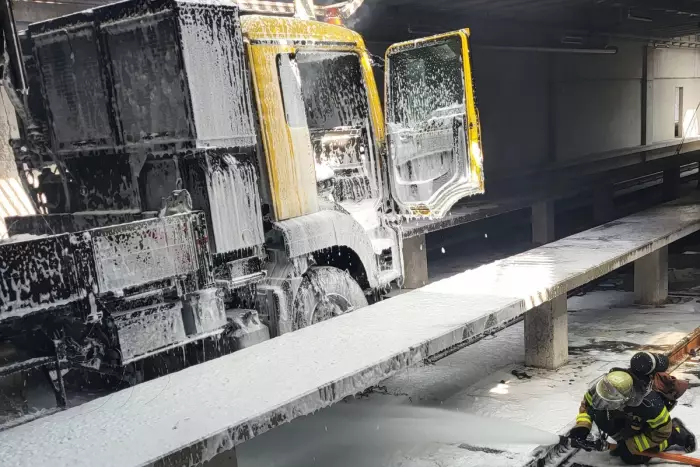 Ein LKW brannte in einer Halle der SSB in Stuttgart Möhringen fast vollständig aus, Einsatzkräfte brachten das Feuer schnell unter Kontrolle.
