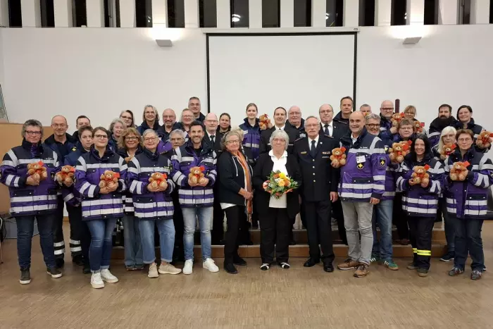 Die Notfallseelsorge ist ein ökumenisches Angebot der Kirchen, das Menschen in akuten Krisensituationen seelsorglich begleitet – etwa nach Unfällen oder beim Verlust von Angehörigen. Über 50 Ehrenamtliche engagieren sich in der Psychosozialen Notfallversorgung (PSNV) im Stadt- und Landkreis Karlsruhe. „Wir treffen uns zweimal jährlich, meist in der Laurentiusgemeinde in Karlsruhe-Hagsfeld zu unserer Vollversammlung“, berichtet Daniel Paulus, evangelischer Leiter der Notfallseelsorge. Die Leitung teilt er sich mit Thomas Christl, Diakon der katholischen Kirchengemeinde. Bei der jüngsten Vollversammlung hatte sich besonderer Besuch angekündigt: Eckhard Helms, Vorsitzender des Kreisfeuerwehrverbands, sowie weitere Vorstandsmitglieder waren zu Gast. Begleitet wurden sie von Marita Klenk und Andrea Nagel vom Verein Freundeskreis Teddybär e.V. „Unsere Teddybären spenden Kindern in Notsituationen Trost“, erklärte Marita Klenk. Der Verein hat seit seiner Gründung im Jahr 1998 bereits über 100.000 „Tröstebären“ übergeben. „Der Kreisfeuerwehrverband hat in seinem Jubiläumsjahr zahlreiche Veranstaltungen im gesamten Landkreis durchgeführt. Dabei wurde bewusst auf Gastgeschenke und Honorare für Vortragende verzichtet, um Spenden für einen guten Zweck zu sammeln“, erläuterte Eckhard Helms. Mit dem Erlös konnten 260 Teddybären finanziert werden, die nun die Arbeit der PSNV unterstützen sollen. Daniel Paulus bedankte sich herzlich für diese wertvolle Ausstattung, insbesondere für die Gespräche mit Kindern nach Unglücksfällen. Auch die Krisenhelferinnen und Kriseninterventionshelfer des DRK-Ortsvereins Karlsruhe wurden mit Teddybären ausgestattet. Seit 2018 besteht eine Kooperationsvereinbarung mit dem DRK. Mit einem abschließenden Dank an die Vertreterinnen des Vereins Freundeskreis Teddybär e.V. beendete Eckhard Helms die feierliche Übergabe.