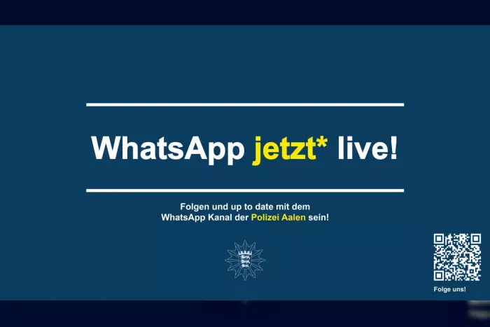 Die WhatsApp-Kanäle der Polizei Baden-Württemberg und des Polizeipräsidiums Aalen sind unter den folgenden Links erreichbar oder können direkt über die WhatsApp-Kanalsuche gefunden werden:
