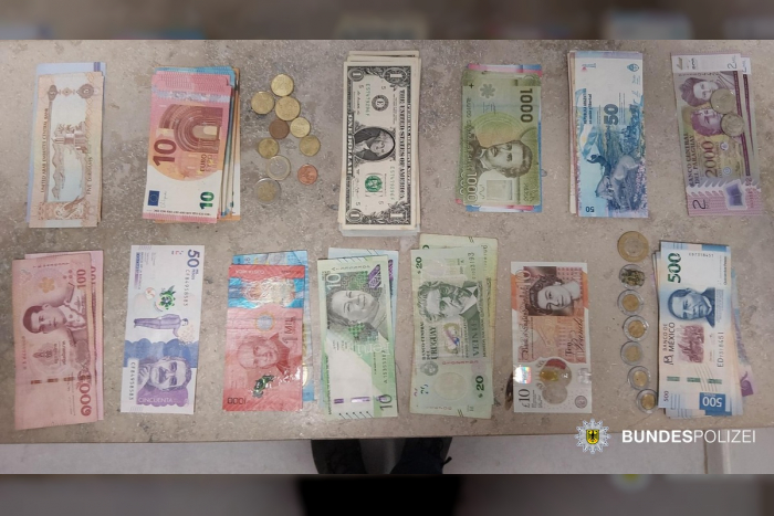 Ein ehrlicher Finder übergab der Bundespolizei am Mittwochabend (15. April) am Ostbahnhof München einen roten Rucksack mit einer beträchtlichen Menge Bargeld. Die Geldscheine stammten aus dreizehn verschiedenen Währungen – darunter auch aus verschiedenen südamerikanischen Ländern – und hatten einen Gesamtwert von 5.260 Euro. Neben dem Bargeld befanden sich auch typische Reiseutensilien in dem verlorenen Rucksack. Der Rucksack wurde von einem Staatsbürger aus Paraguay in einer stadteinwärts fahrenden S-Bahn der Linie 8 verloren. Die Bundespolizei sicherte den Fund und konnte die Identität des vermutlichen Besitzers feststellen. Da die Kontaktinformationen des 45-jährigen Unbekannten bisher fehlen und er keinen Wohnsitz in Deutschland hat, übergaben die Bundespolizisten den Rucksack schließlich dem Fundbüro am Ostbahnhof.