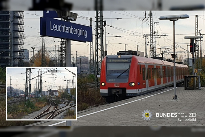 ** Leuchtenbergring, Gefährlicher Eingriff in den Bahnverkehr: Um 09:00 Uhr (9. Januar) befand sich ein 42-jähriger Syrer aus unbekannten Gründen, jedoch ohne Suizidabsichten, im Gleisbereich am S-Bahn-Haltepunkt Leuchtenbergring. Ein Triebfahrzeugführer einer S-Bahn (S8) musste eine Notbremsung durchführen, um eine Kollision zu vermeiden. Anschließend nahm er den Syrer mit in den Führerstand und fuhr mit ihm zum Münchner Ostbahnhof, wo ihn die Bundespolizei übernahm. In der S-Bahn, in der sich 300 bis 400 Reisende befanden, wurde niemand verletzt. Die Bundespolizei ermittelt gegen den 42-Jährigen wegen eines gefährlichen Eingriffs in den Bahnverkehr.