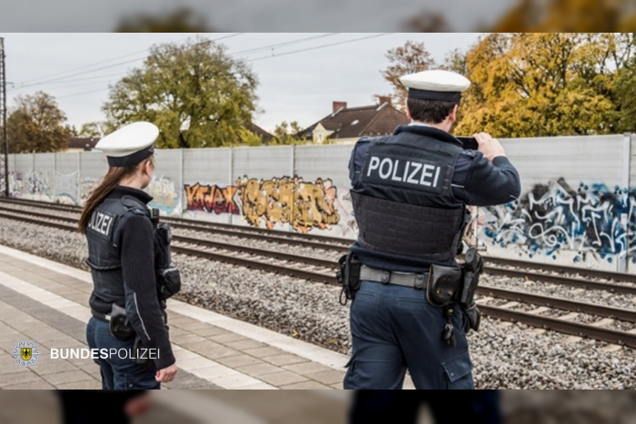 In der Nacht vom Mittwoch (8. April) auf Donnerstag ereignete sich am Bahnhof München-Heimeranplatz eine Sachbeschädigung durch Graffiti. Dank eines aufmerksamen Zeugen und des schnellen Eingreifens der eingesetzten Kräfte konnte ein Verdächtiger festgenommen werden. Um etwa 00:15 Uhr informierte ein 47-jähriger Passagier die Einsatzzentrale des Polizeipräsidiums München über mehrere Jugendliche, die eine S-Bahn der Linie S6 am Bahnsteig besprühten. Sofort eingeleitete Fahndungsmaßnahmen in der Nähe führten dazu, dass eine Streife des Polizeipräsidiums München einen 20-jährigen Deutschen in unmittelbarer Nähe des Tatorts antraf und vorläufig festnahm. Der Verdächtige wurde dann an die Bundespolizei übergeben. Weitere beteiligte Personen konnten im Rahmen der Fahndung nicht mehr gefunden werden. Bei der Durchsuchung des 20-Jährigen wurden in einer mitgeführten Tasche Gegenstände entdeckt, die mit der Tat in Verbindung stehen dürften. Außerdem konnten am Tatort eine Atemschutzmaske und eine Sprühdose sichergestellt werden. Auf Anordnung der Staatsanwaltschaft München I wurde auch das Mobiltelefon des Verdächtigen beschlagnahmt. Der Schaden beläuft sich nach aktuellen Informationen auf etwa 1.690 Euro. Nach Abschluss der polizeilichen Maßnahmen wurde der Verdächtige wieder freigelassen. Die Bundespolizei hat Ermittlungen wegen Sachbeschädigung eingeleitet.