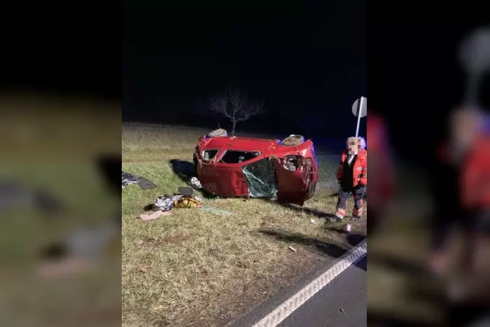 Ein Verkehrsunfall auf der Landesstraße 3317 führte zu zwei Verletzten und einem demolierten Nissan. Der Micra überschlug sich im Graben nach einer Kollision mit einem Leitpfosten.