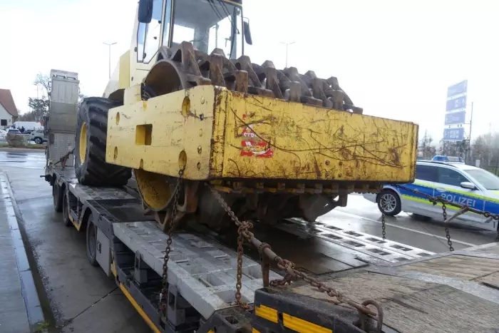 Der LKW transportierte eine Erdbaumaschine, die etwa 26 Tonnen schwer war, jedoch offensichtlich nicht ordnungsgemäß gesichert war. Die Beamten bemerkten, dass die Zurrketten, die zur Sicherung der Stachelwalze auf dem Tieflader verwendet wurden, stark durchhingen. Auch die Kettenführung war unzureichend. Vor allem fehlte eine angemessene seitliche Sicherung der großen Maschine.