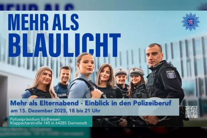 Am 15. Dezember 2025 von 18 bis 21 Uhr bietet die Polizei im Polizeipräsidium Südhessen interessierten Schülern und ihren Eltern oder anderen wichtigen Bezugspersonen Einblicke in den abwechslungsreichen Polizeiberuf. Die Veranstaltung richtet sich an Schüler ab der 10. Klasse sowie an ihre Eltern und andere wichtige Bezugspersonen, die bei der Berufswahl unterstützen sollen.