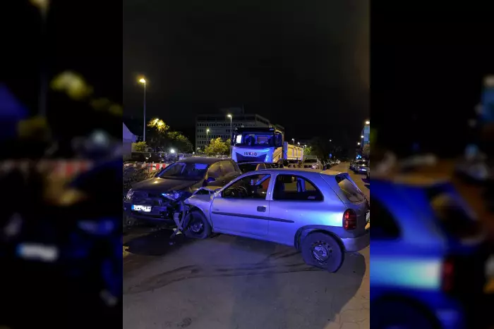 Eine geplante Verkehrskontrolle endete in der Nacht zum Dienstag mit einer verletzten Besatzung eines Streifenwagens und mehreren beschädigten Fahrzeugen – darunter auch das Polizeiauto und der Wagen, dessen Fahrer vor der Kontrolle fliehen wollte. Nach bisherigen Informationen wollte eine Streife der Offenbacher Stadtpolizei kurz nach Mitternacht im Goethering einen Opel kontrollieren und gab dem Fahrer entsprechende Anhaltezeichen. Dieser ignorierte jedoch die Zeichen und beschleunigte, um offenbar der Überprüfung zu entkommen. An der Ecke zur Strahlenberger Straße verlor der Fahrer des Corsa dann die Kontrolle, überfuhr einen hohen Bordstein und kollidierte einige Meter weiter mit drei geparkten Fahrzeugen, die durch die Aufprallenergie zusammengeschoben wurden. Auch der Streifenwagen verunglückte bei der Verfolgung und prallte gegen einen Ampelmast. Die drei Stadtpolizisten im Alter von 24, 32 und 37 Jahren erlitten leichte Verletzungen und wurden zur weiteren Behandlung ins Krankenhaus gebracht.