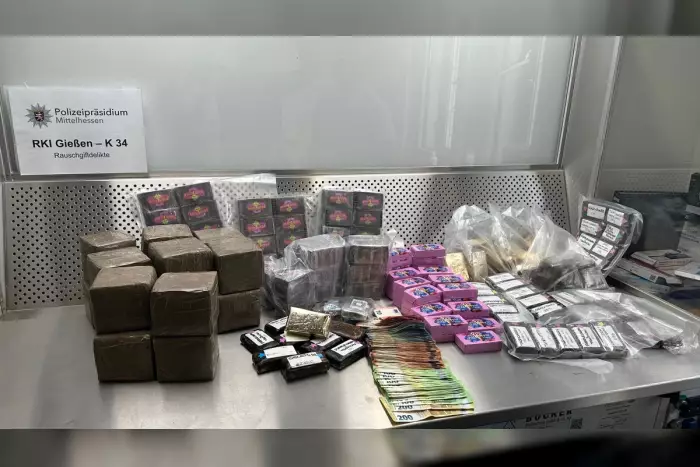 Ein 23-jähriger Mann wurde in Gießen mit 35 kg Cannabisharz und 11.500 Euro Bargeld festgenommen. Nach Durchsuchung seiner Wohnung und Vorführung vor Gericht wurde Haftbefehl erlassen.