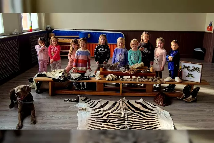 Die Kinder hatten die Möglichkeit, Felle, Muscheln und andere Gegenstände aus nächster Nähe zu betrachten und anzufassen, die vom Zoll aufgrund von Artenschutzbestimmungen sichergestellt worden waren.