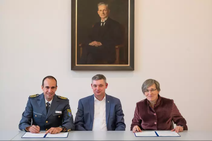 Die Förderung demokratischer Grundwerte und die Stärkung historisch-politischer Bildung stehen im Mittelpunkt einer Kooperation der Arbeitsstelle Holocaustliteratur (AHL) der Justus-Liebig-Universität Gießen (JLU) und des Polizeipräsidiums Mittelhessen (PPMH). Die Präsidentin der JLU, Prof. Dr. Katharina Lorenz, hat eine Vereinbarung für eine „Allianz für Demokratie“ am Mittwoch gemeinsam mit Torsten Krückemeier, dem Präsidenten des PPMH, und im Beisein des AHL-Leiters Prof. Dr. Sascha Feuchert unterzeichnet. Die Kooperationsvereinbarung zielt darauf ab, durch gemeinsame Bildungs- und Erinnerungsarbeit einen aktiven Beitrag zur Demokratiestärkung zu leisten.