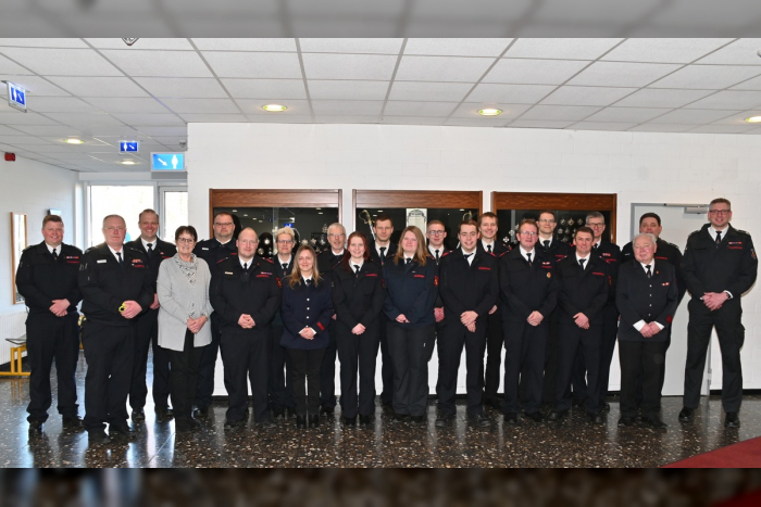 Im Anschluss nahm Wehrleiter Stappert noch die Beförderungen und Ehrungen vor. Von der Feuerwehrfrau zur Oberfeuerwehrfrau wurde Sarah Vollmer befördert. Vom Feuerwehrmann zum Oberfeuerwehrmann Fabian Dartmann und Simon Ludäscher. Von der Oberfeuerwehrfrau zur Hauptfeuerwehrfrau Marina Becker und vom Oberfeuerwehrmann zum Unterbrandmeister wurden Simon Fischer und Benjamin Nagel befördert. Vom Hauptfeuerwehrmann zum Unterbrandmeister Philipp Benk. Nach bestandener Prüfung am Institut der Feuerwehr (IDF) NRW wurde Christin Biermann zur Brandmeisterin ernannt. Von der Brandmeisterin zur Oberbrandmeisterin wurde Christina Balkenhol ernannt. Mario Rath wurde ebenfalls nach bestandener Prüfung am IDF vom Oberbrandmeister zum Brandinspektor befördert. Gleichzeitig wurde er durch den Wehrführer zum Einheitsführer als Zugführer der ABC-Gruppe Olsberg ernannt.