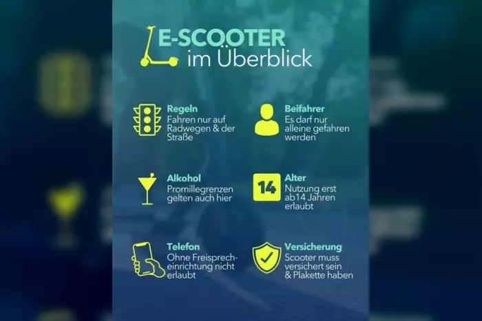 Hinweis: E-Scooter dürfen nur allein, mit gültigem Versicherungskennzeichen und unter Beachtung der geltenden Verkehrsregeln genutzt werden. Bei Alkohol gelten die gleichen Promillegrenzen wie für Autofahrer. Eine Übersicht zur Nutzung von E-Scootern ist der Meldung beigefügt.