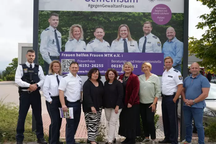 (ro)Häusliche Gewalt ist oft ein Tabuthema, doch Vertrauen hilft dabei, die Taten zu beenden. Unter dem Motto „Vertrauen beginnt mit einem Lächeln“ stellten der Verein „Frauen helfen Frauen Main-Taunus e. V.“ und die Polizeidirektion Main-Taunus in Anwesenheit des Direktionsleiters Tobias Erler am Donnerstag im Rahmen des 40-jährigen Vereinsjubiläums eine neue Plakatkampagne vor. Beamtinnen und Beamte der Polizeidirektion zeigen Gesicht gegen Gewalt an Frauen und werben dafür, dass Betroffene Hilfe finden.