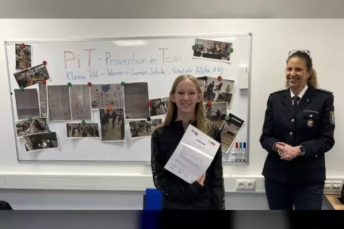 Markus Splinter, Erster Polizeihauptkommissar und Leiter der Dienststelle, sowie seine Stellvertreterin, Polizeihauptkommissarin Sandra Schwan, überreichten die wohlverdienten Zertifikate in einer feierlichen Zeremonie. Sowohl die Klassenlehrerin als auch die Schulleiterin waren sichtlich stolz auf ihre Schülerinnen und Schüler, die trotz der ernsten Themen viel gelernt und Spaß gehabt haben. Die Veranstaltung wurde von der örtlichen Polizeibeamtin, Polizeihauptkommissarin Heike Lachmann, begleitet.