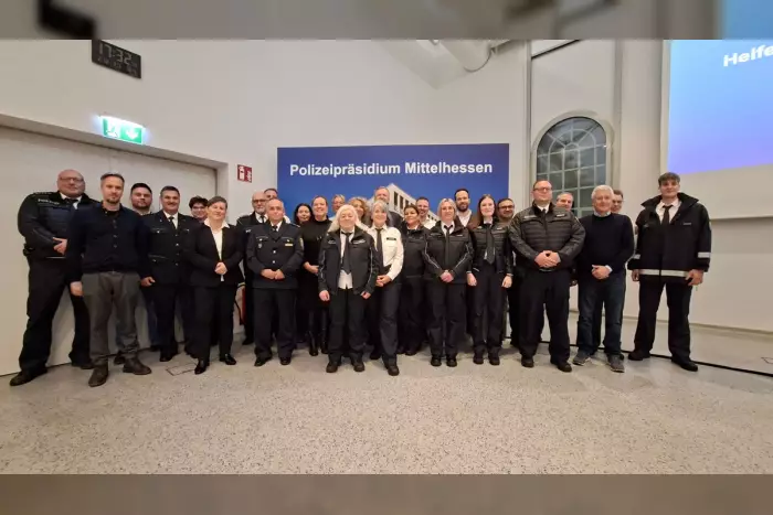 Zusammen mit dem Staatssekretär Martin Rößler hieß die Leitende Kriminaldirektorin Carina Lerch gestern (02.12.2025) die neuen Freiwilligen Polizeihelferinnen und Polizeihelfer aus dem Bereich des Polizeipräsidiums Mittelhessen willkommen. Im Saal Florenz des Polizeipräsidiums trafen sich die engagierten Bürger und ihre Gemeindevertreter zum freundlichen Empfang und interessanten Austausch. Die vier Männer und sechs Frauen absolvierten zunächst verschiedene Unterrichtseinheiten, in denen sie rechtliche Grundlagen, Eingriffsbefugnisse, Kenntnisse in der Eigensicherung und Erste-Hilfe-Maßnahmen erlernten.