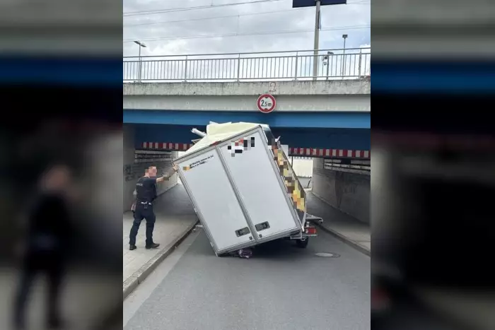 Ein 30-Jähriger blieb mit seinem Kastenwagen an einer zu niedrigen Bahnunterführung hängen, verursachte Sachschaden von 13.000 Euro und blieb unverletzt.