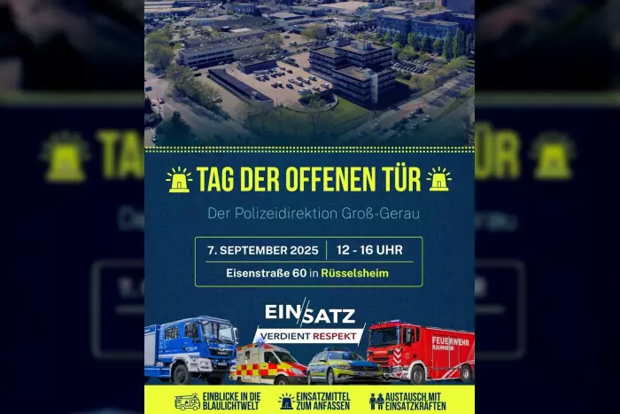 Der „Tag der offenen Tür“ der Polizeidirektion Groß-Gerau findet am 7. September statt und lädt alle Bürger herzlich ein. Von 12 bis 16 Uhr öffnen sich die Tore der Polizeidirektion in der Eisenstraße 60 in Rüsselsheim. An diesem Tag erwartet die Besucher ein spannendes Programm mit vielen Aktivitäten für Jung und Alt: