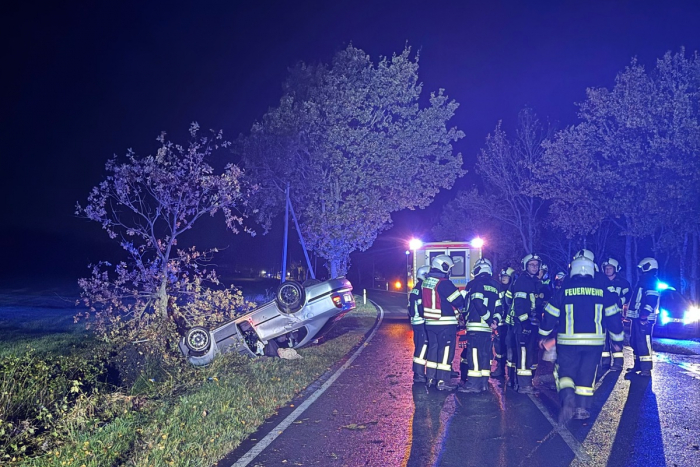 Ein Auto kam bei einem Verkehrsunfall am späten Sonntagabend von der Dietrichsfelder Straße ab. Nachdem sich das Fahrzeug überschlug, mit einem Baum kollidierte und schließlich kopfüber in einem Seitengraben in Höhe der Einmündung Zum Hohehan landete, wurde sowohl der Rettungsdienst als auch die Feuerwehr Plaggenburg gegen 22:35 Uhr alarmiert. Beim Eintreffen der Einsatzkräfte am Unfallort hatte der Fahrer bereits eigenständig sein Fahrzeug verlassen. Die Sanitäter versorgten ihn sofort, während die Feuerwehr die Fahrbahn sperrte, den Brandschutz sicherstellte und die Einsatzstelle ausleuchtete.