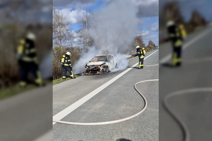 Ein Kleinwagen geriet aus ungeklärter Ursache in Brand. Die Feuerwehr löschte das Fahrzeug, während die Autobahn kurzzeitig gesperrt wurde.