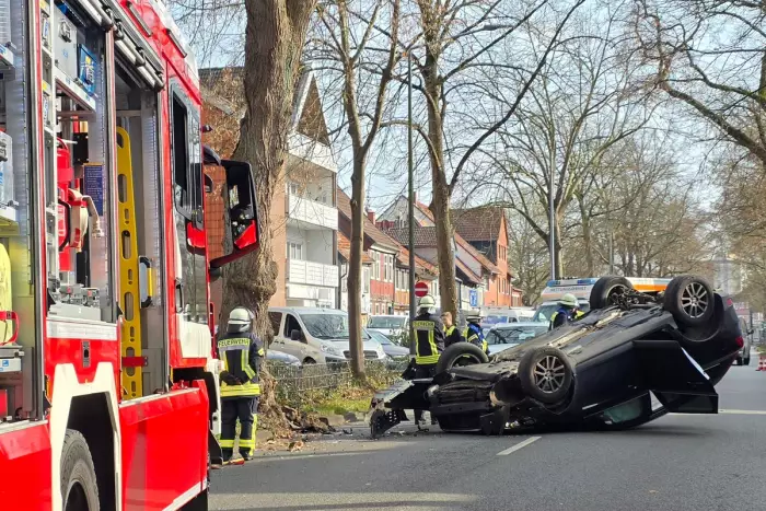 Am Dienstag um 14:37 Uhr wurde die Feuerwehr Celle zu einem Verkehrsunfall in die Blumlage gerufen. Laut ersten Berichten sollte das Auto auf dem Kopf liegen.