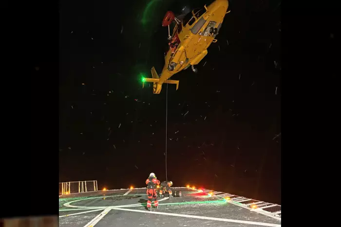 Ein Fischer östlich von Helgoland wurde auf See schwer verletzt. Trotz schlechten Wetters wurde er erfolgreich von einem Rettungsteam versorgt und ins Krankenhaus gebracht.