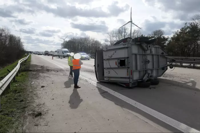 Als die Beamten am Unfallort eintrafen, stellten sie fest, dass der Pferdeanhänger, der von einem Pkw gezogen wurde, der von einer 25-jährigen Frau aus dem Kreis Ostholstein gefahren wurde, aus unbekannten Gründen vom Zugfahrzeug abgerissen und auf die linke Seite gekippt war. Nach einer Kollision mit der Leitplanke kam er im dreispurigen Bereich auf dem Hauptfahrstreifen und dem mittleren Streifen zum Stillstand. Das Zugfahrzeug konnte von der Fahrerin auf dem Seitenstreifen angehalten werden. Sie blieb unverletzt.