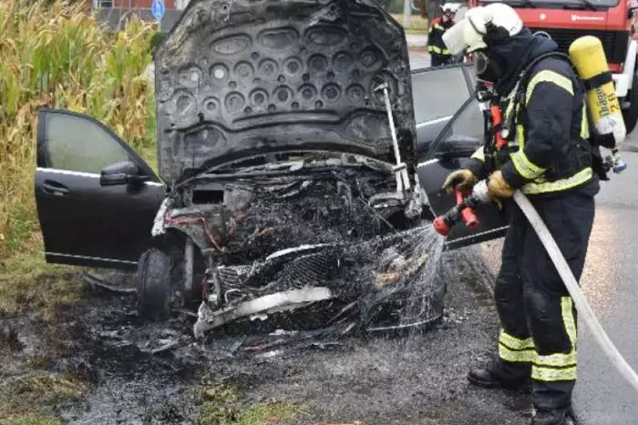 Ein Mercedes C-Klasse geriet während der Fahrt in Brand. Feuerwehr löschte die Flammen, Fahrer blieb unverletzt.