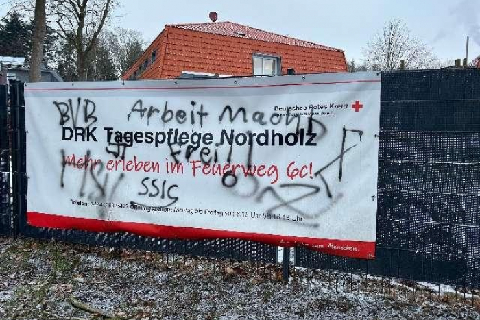 Wurster Nordseeküste/Nordholz. In der Nacht von Dienstag auf Mittwoch (17./18.02.2026) haben Unbekannte an diversen Orten in Nordholz rechtsradikale Parolen und Hakenkreuze gesprüht.