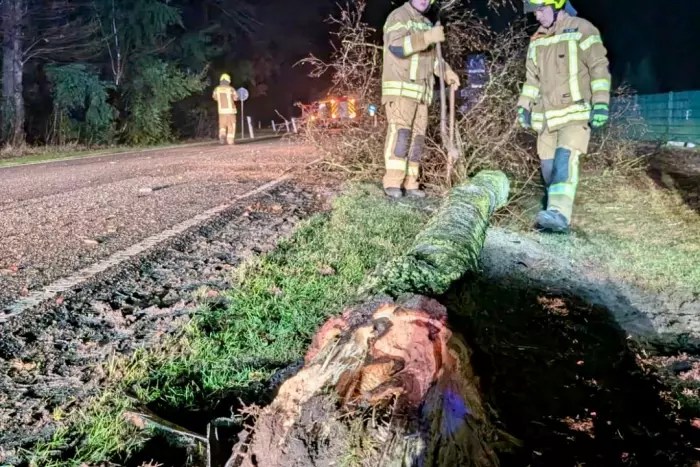 In der Nacht auf Freitag, den 13. Februar 2026, wurde die Feuerwehr Sage zu einem Einsatz in Bissel gerufen. Alle Insassen waren unverletzt, der Baum wurde entfernt.
