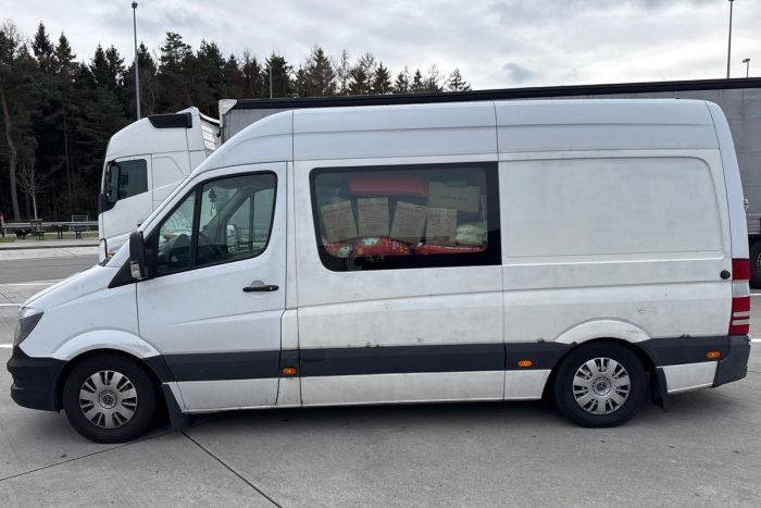 Schon beim äußerlichen Check des Fahrzeugs war offensichtlich, dass es überladen war. Die Lebensmittel waren nicht gesichert und ragten über die Kopfstützen der Sitze hinaus. Das Fahrzeug wurde zur nächsten Waage gebracht.