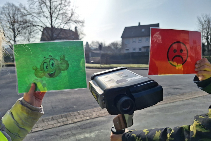 Unterstützt wurden die Polizeibeamtinnen und Polizeibeamten von Kindergartenkindern, die im Vorfeld Schilder mit lachenden und weinenden Smileys gestaltet hatten. Mit grünen und roten Tafeln gaben sie den Verkehrsteilnehmenden eine direkte Rückmeldung zu deren Fahrweise. Regelkonformes Fahren wurde positiv signalisiert, überhöhte Geschwindigkeit entsprechend sichtbar gemacht.