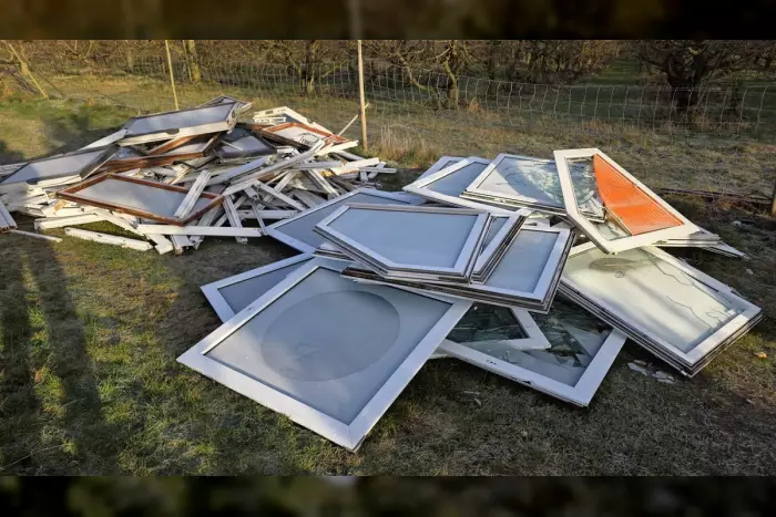 Unbekannte haben alte Fenster illegal entsorgt, Polizei ermittelt wegen Verstoß gegen Abfallrecht und sucht Zeugen.
