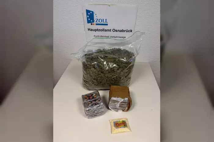 Osnabrücker Zöllner stellten am Nachmittag des 24. Februar 2026 bei einer Fahrzeugkontrolle 2 Kilogramm Marihuana und 2 Kilogramm Haschisch im Wert von rund 36.000 Euro sicher.