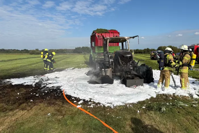 Loxstedt/ Düring. Am 30.09.2025 um 12:25 Uhr brach während der Erntearbeiten ein teurer Ackerschlepper in Brand. Dank des Einsatzes der freiwilligen Feuerwehren der Gemeinde Loxstedt konnte eine Ausbreitung des Feuers auf den Anhänger und das angrenzende Feld größtenteils verhindert werden. Der Ackerschlepper wurde vollständig zerstört. Zum Glück gab es keine Verletzten.