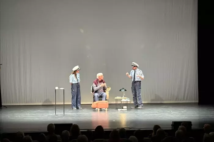 Das Wolfgang-Borchert-Theater präsentierte das Stück „Leg einfach auf!“, ein bewusst humorvoll gestaltetes, aber gleichzeitig eindringliches Lehrstück über Schockanrufe, den Enkeltrick, KI-basierten Stimmenklau und andere moderne Betrugsformen. Die Aufführung zeigte, wie professionell Täter vorgehen und wie schnell Betroffene unter Druck in die Falle tappen können.