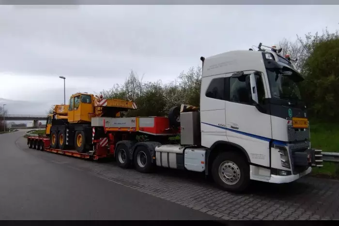 Nach Zahlung einer Sicherheitsleistung in Höhe von 1.670 Euro wurde dem Fahrer die Weiterfahrt untersagt. Um den Autokran weiter zu transportieren, muss der verantwortliche Unternehmer nun eine geeignete Sattelzugkombination einsetzen.